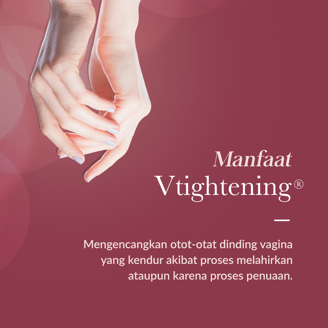 Salah satu cara merawat Vagina adalah dengan treatment Vtightening ®. Vtightening ® adalah perawatan non-invasif dengan hasil instan yang dilakukan untuk mengembalikan bentuk keremajaan vagina dengan memperbaiki bentuk serta mencerahkan area kewanitaan sekaligus membuat fungsi vagina seperti remaja kembali.